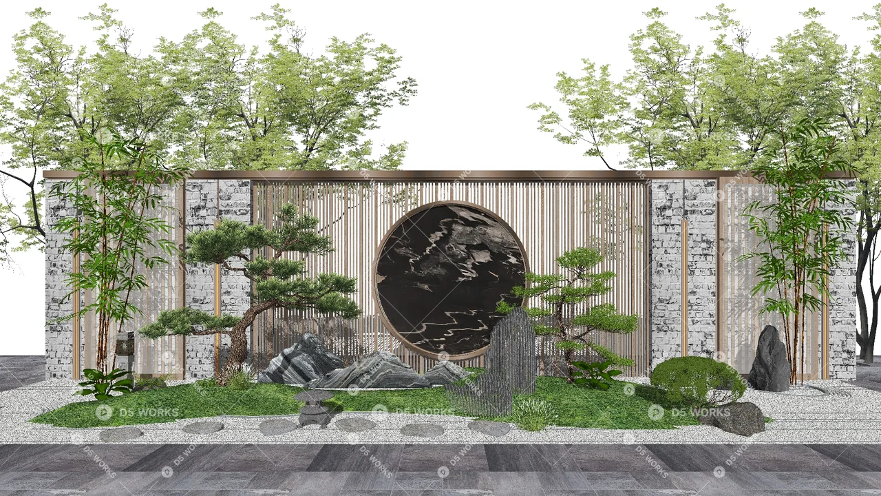 Free New Chinese Landscape Wall 3D Model .skp
