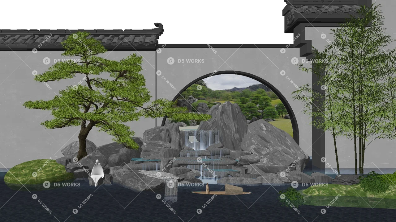 Free Chinese Rockery & Water Features 3D Model .skp