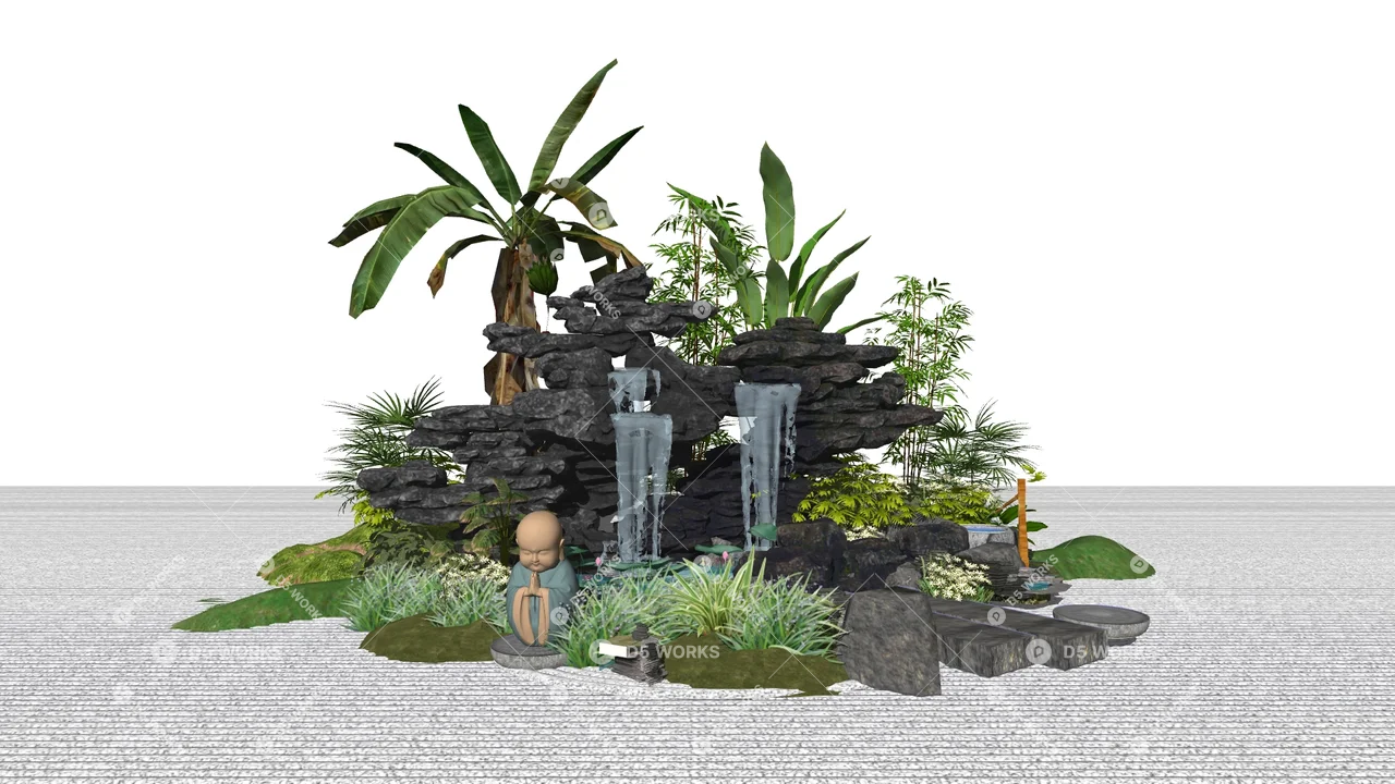 Free Chinese Rockery & Water Features 3D Model .skp
