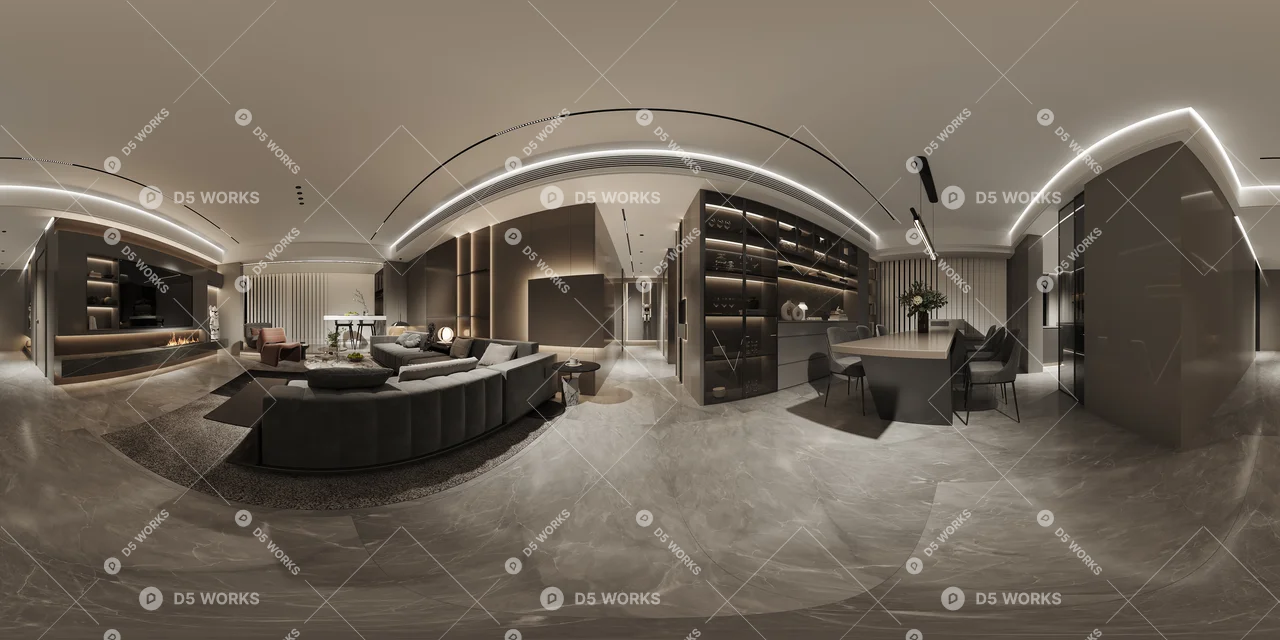 Modern Living & Dining Room 3D Model .max