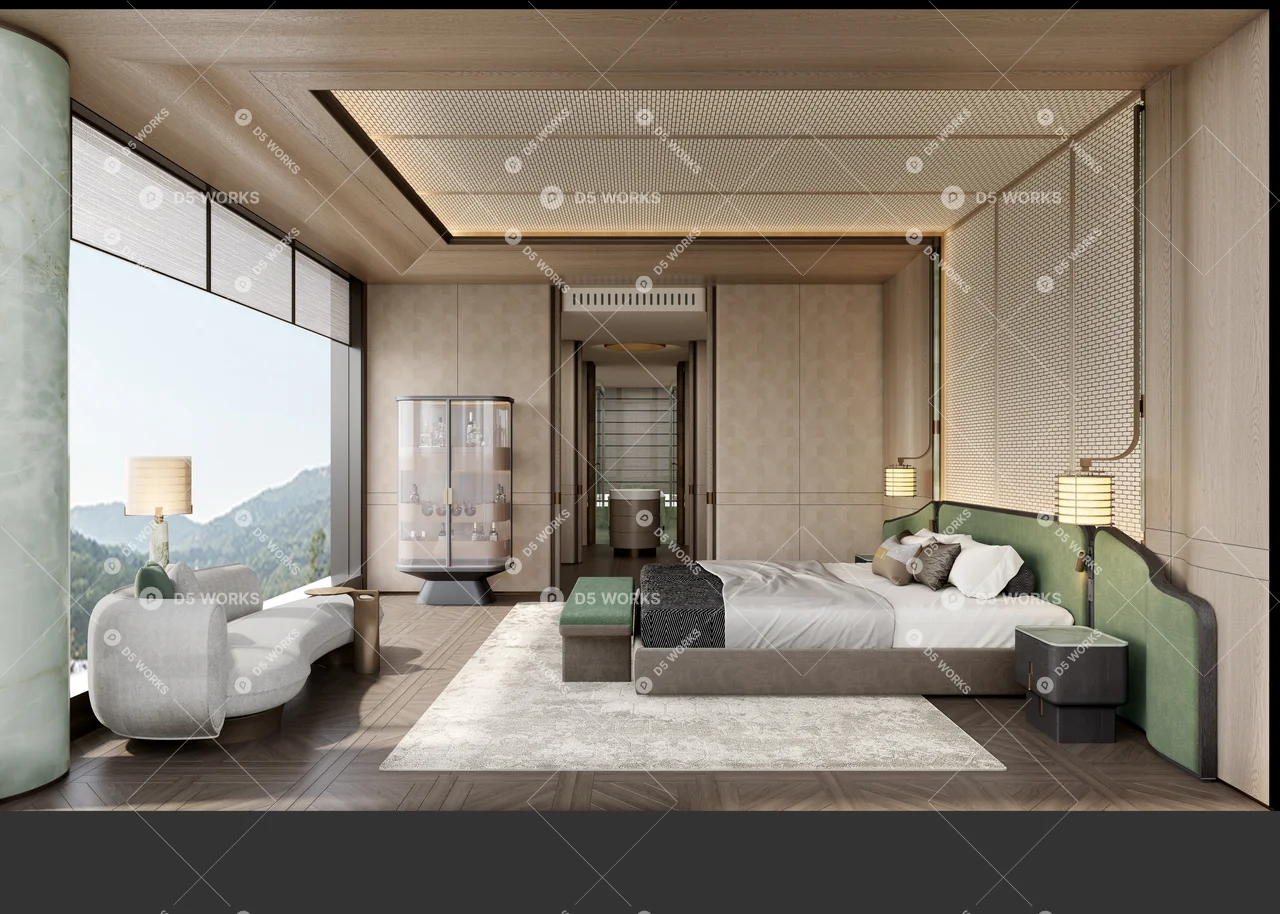 Contemporary Hotel Guest Room 3D Model .max