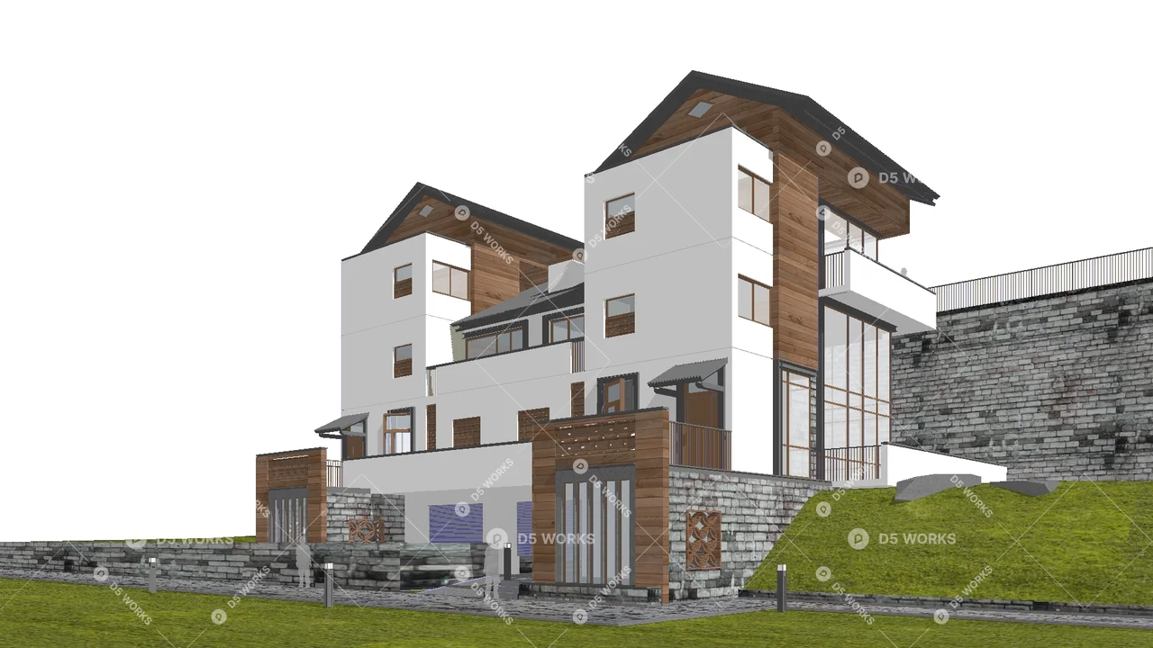 Free Semi-Detached Villa 3D Model .skp