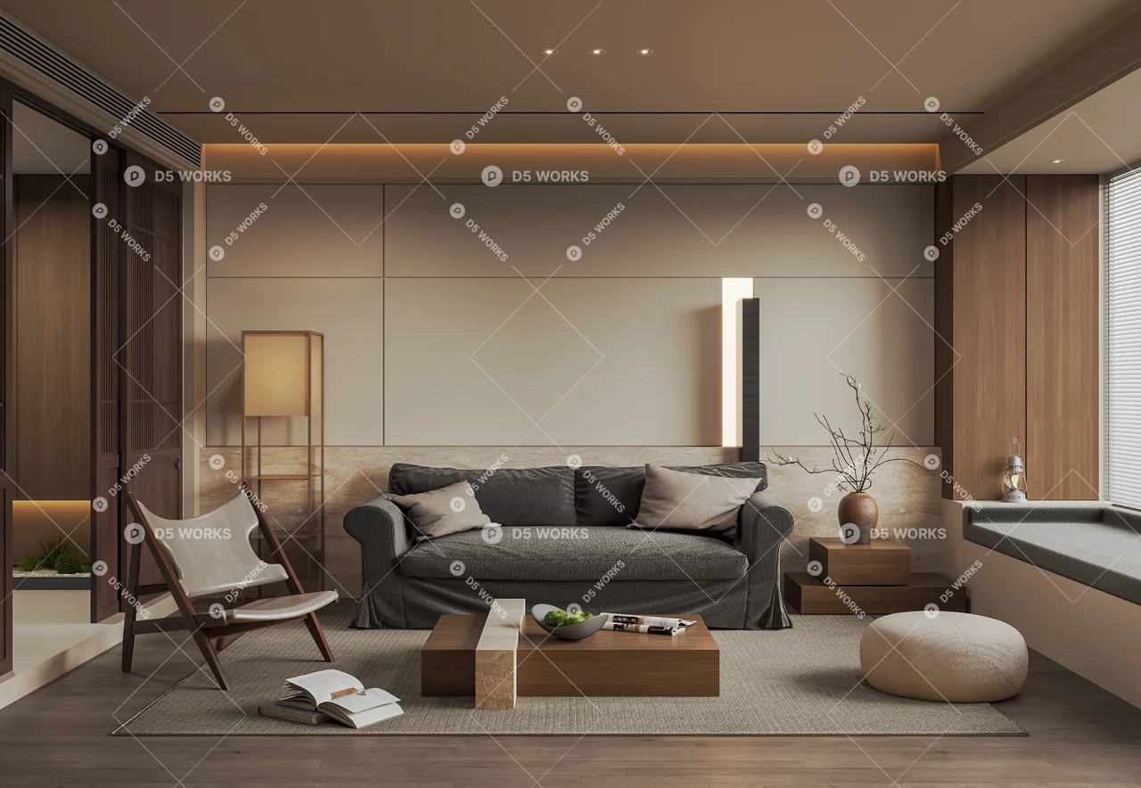 Contemporary Home Living Room 3D Model .max