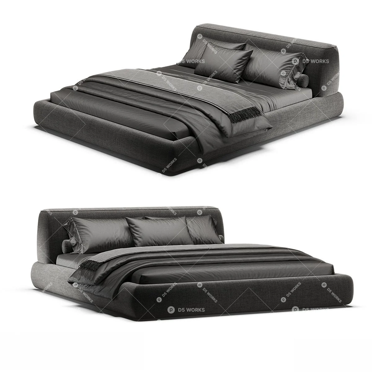Free Modern Double Bed 3D Model .d5a