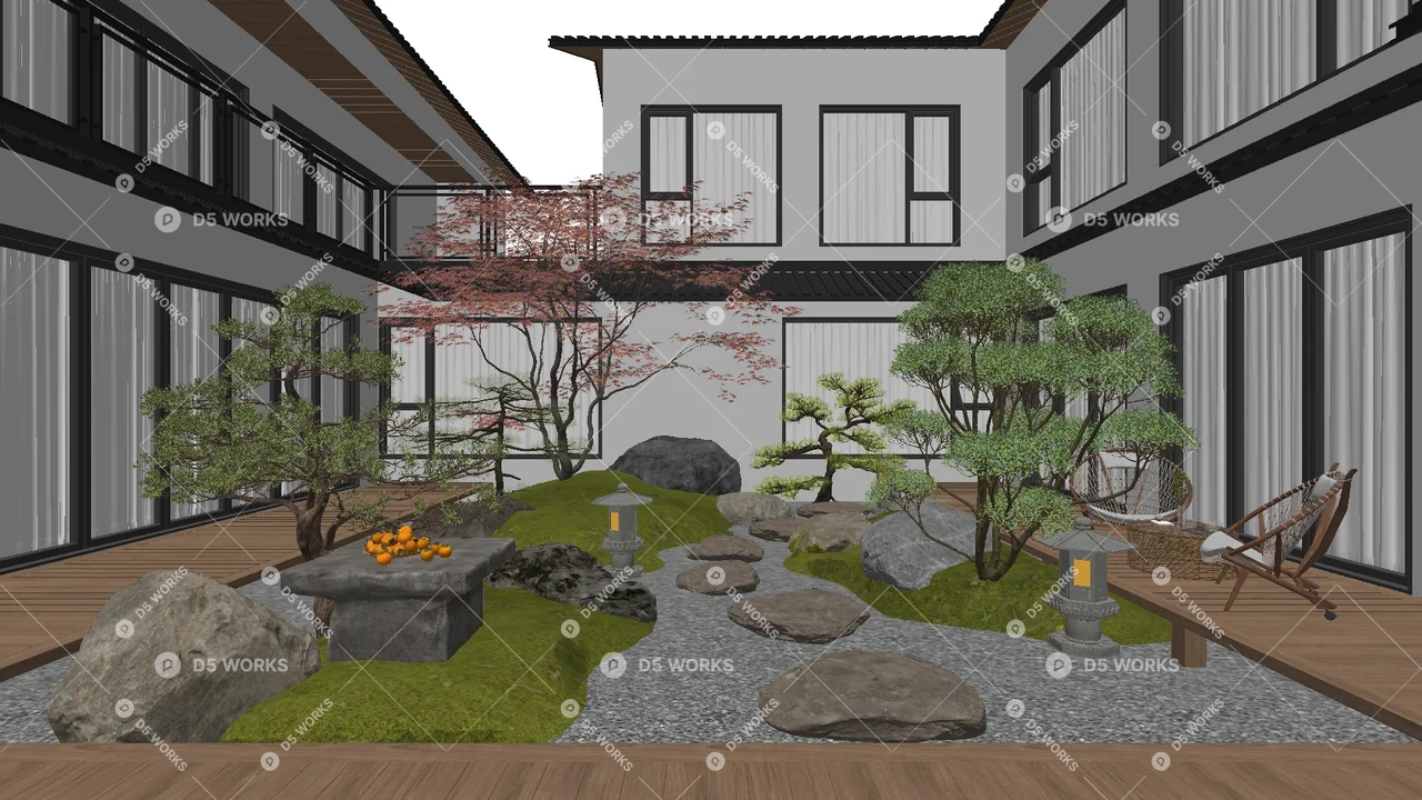 Free Courtyard Landscape 3D Model .skp